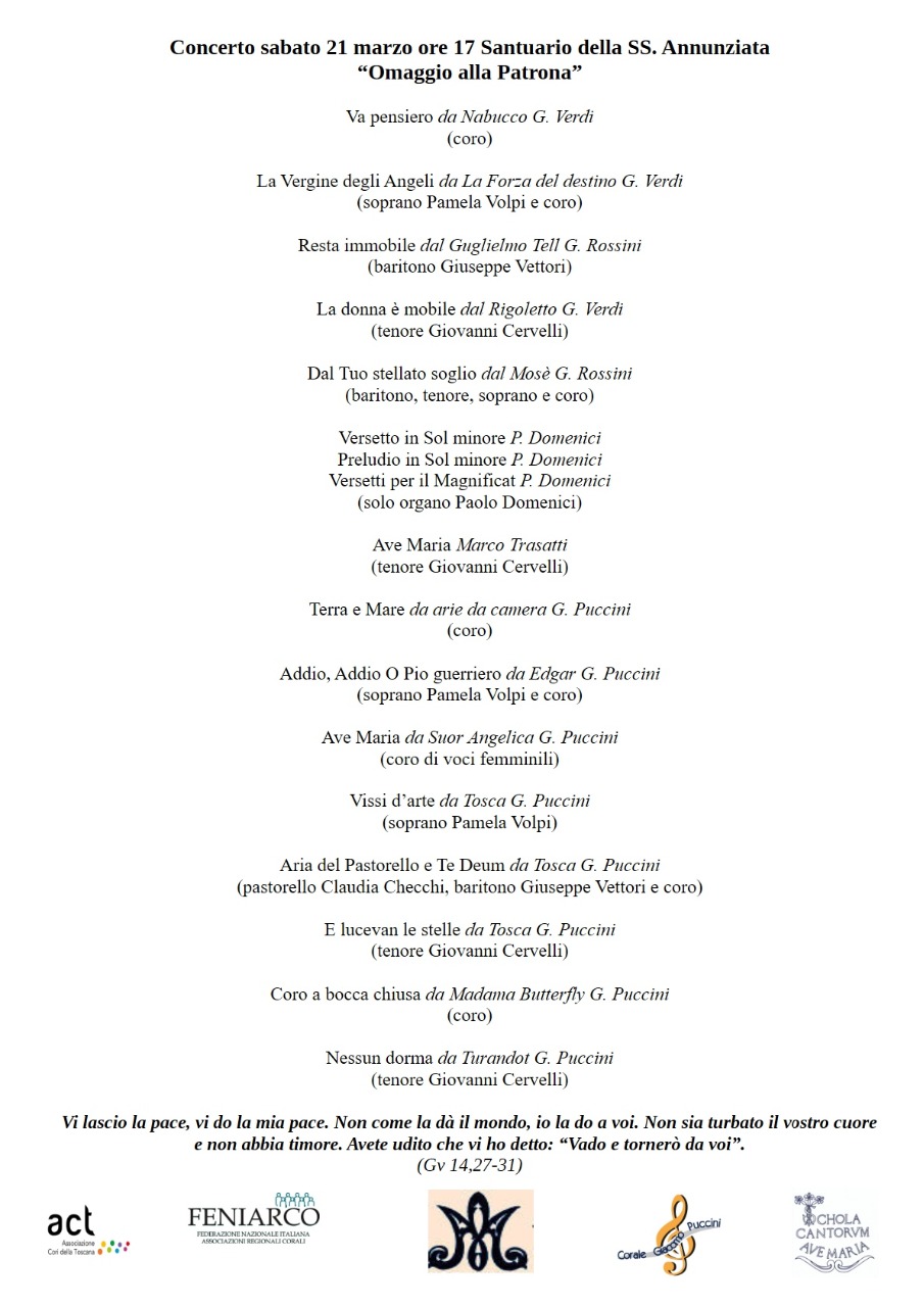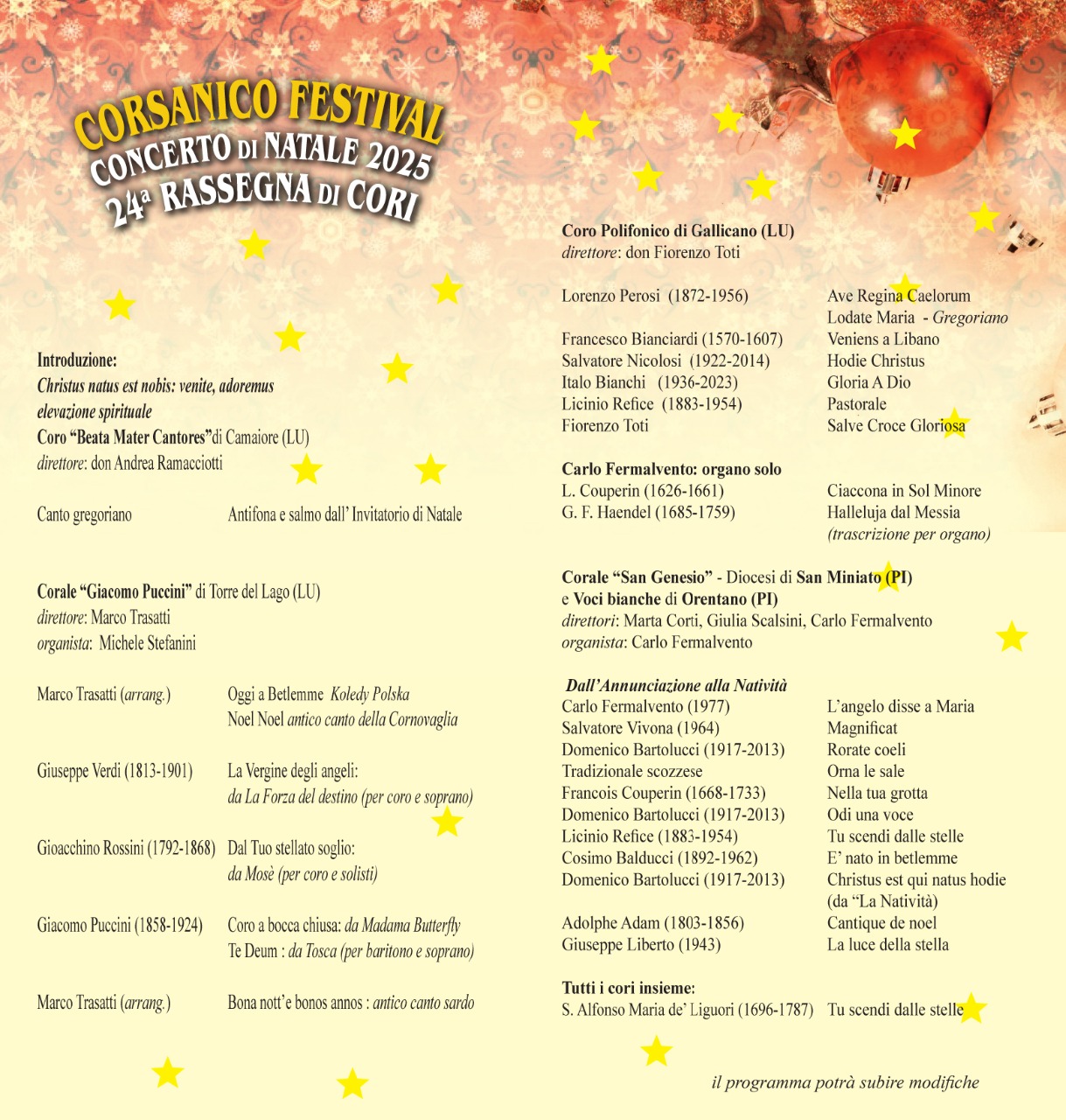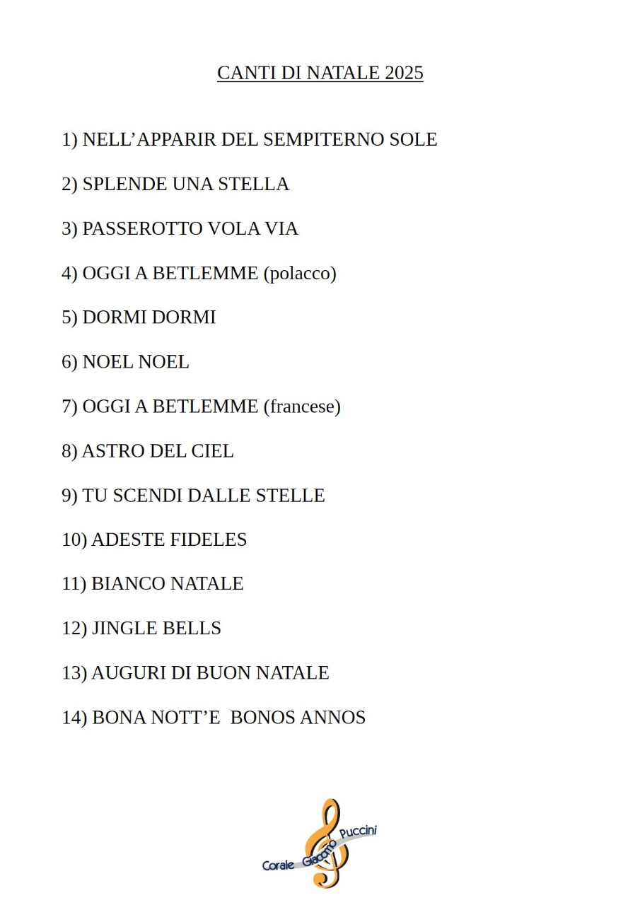 Durante le festività natalizie, la Corale Giacomo Puccini ogni anno propone, oltre al consueto repertorio, una nutrita stagione concertistica di canti tradizionali natalizi italiani ed europei.